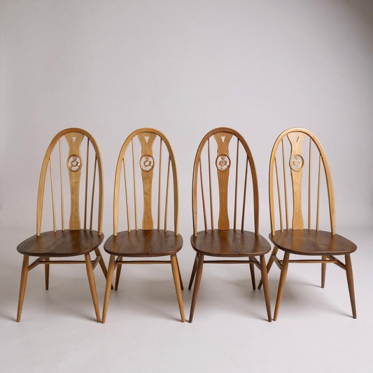 Mid Century Modern Set of 4 Ercol Dining Chairs Windsor Bow Backs Swan