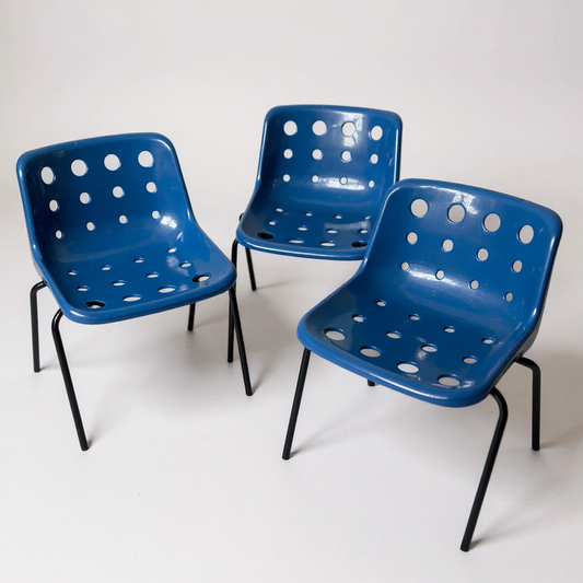 Set of 3 Robin Day Hille Polo Chairs | Mid-Century Modern British Design | Royal Blue Stacking Chairs