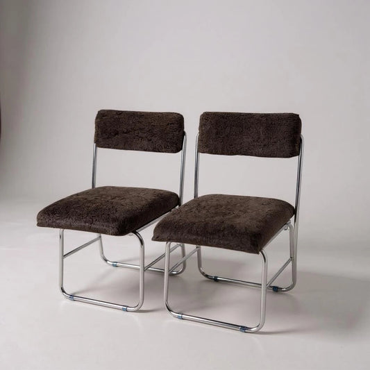Mid Century Modern Pair of Chocolate Brown and Chrome Space Age Folding Chairs