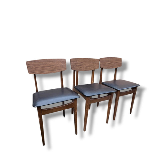 Set of 3 Mid Century Dining Chairs by Legate | Vintage Formica & Black Vinyl Chairs