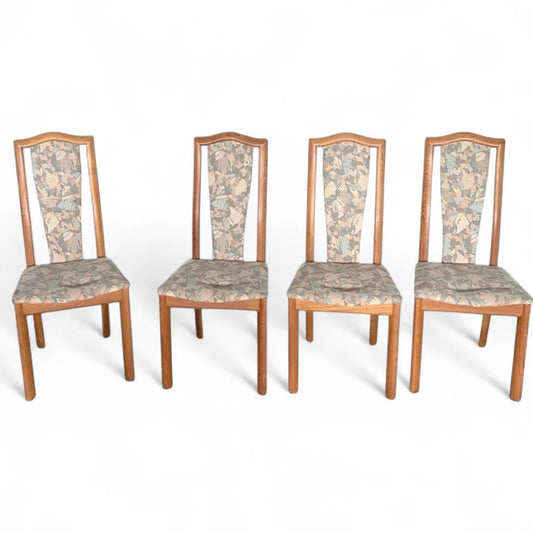 Set of Four Skovby Danish Dining Chairs | Solid Oak Frame with Patterned Upholstery
