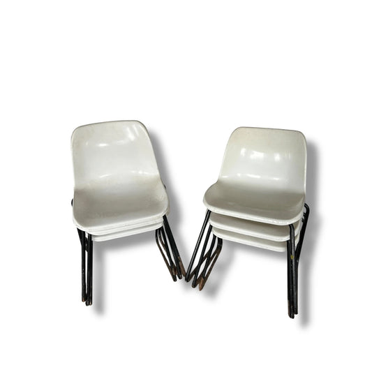 Mid Century Stackable White Plastic & Metal Chairs | Vintage Industrial Seating