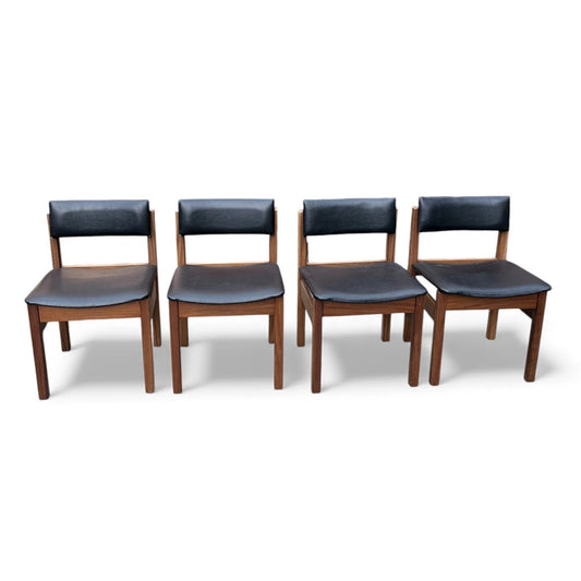 Set of 4 Danish Brutalist Dining Chairs | 1970s Black Vinyl