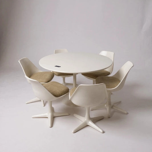 Maurice Burke for Arkana Tulip Dining Set – Round Table & 6 Chairs, Mid-Century Modern