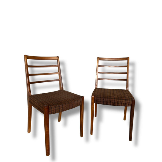 Pair of Vintage Danish Dining Chairs – Mid Century Modern Ladder Back Chairs with Plaid Upholstery