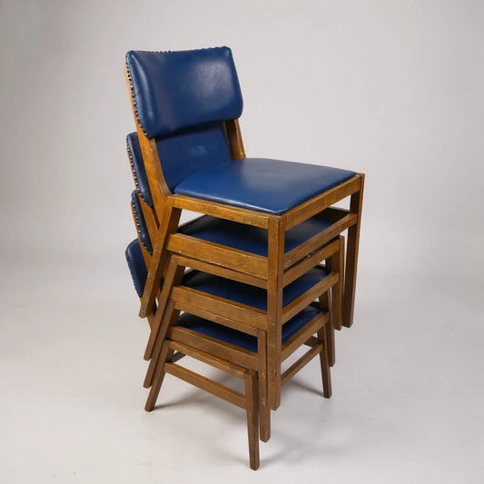 Set of 4 Vintage 1960s Ben Stoe Stacking Dining Chairs – Blue Vinyl & Teak Frame