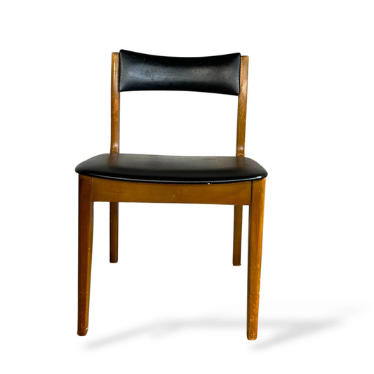 Mid Century Teak Dining Chairs – Set of 2 Vintage Black Vinyl Chairs