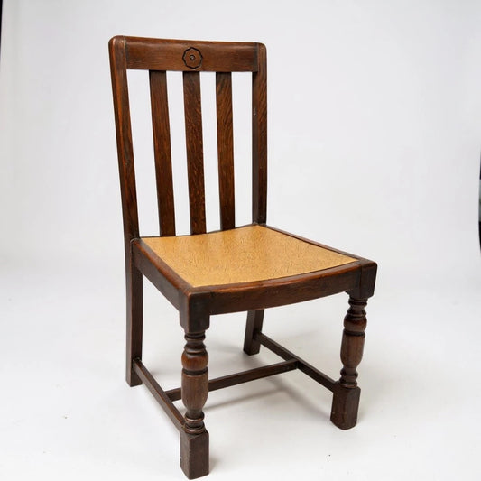 Pair of Vintage Oak Dining Chairs Yellow Leatherette Seats