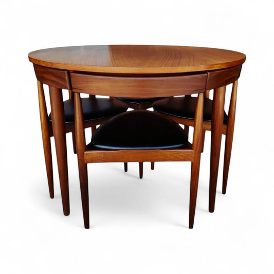 Hans Olsen Frem Røjle Roundette Dining Set | Danish Teak Table & 4 Three-Legged Chairs
