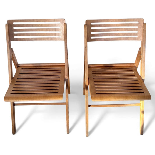 Blonde Beech Folding Chairs – Vintage Scandinavian Modern Slatted Seat Design