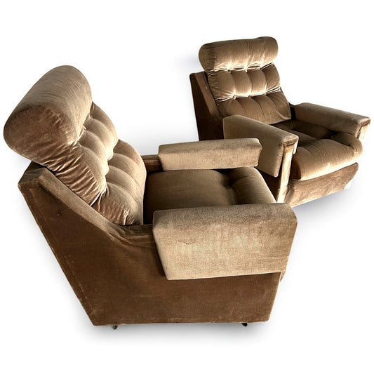 Mid Century Modern Pair of Chenille Fabric Parker Knoll Armchairs