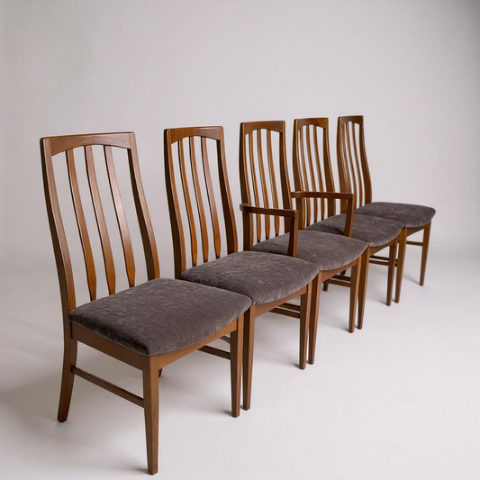 Mid Century Modern Teak Wood Dining Chairs Set by William Laurence