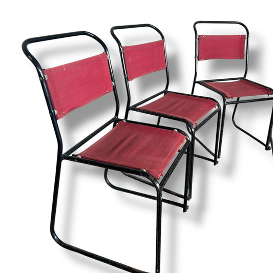 Mid Century Set of Four Pel Tubular Metal Red and Black Dining Chairs
