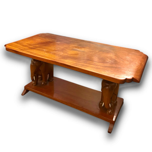Vintage 1960s Elephant Carved Wood Coffee Table