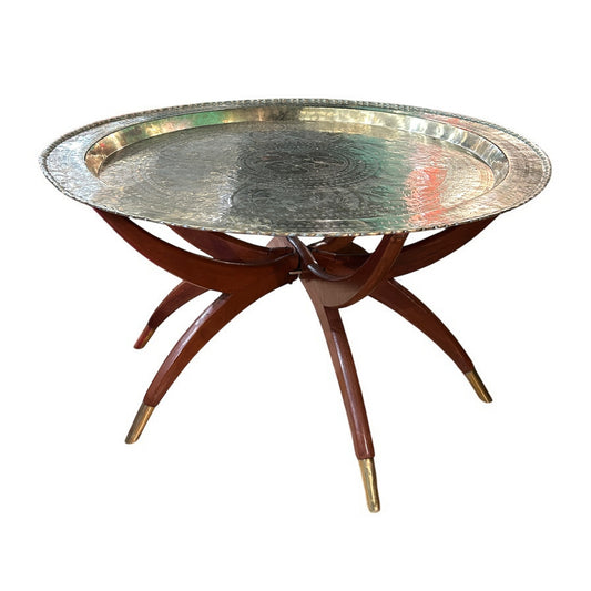 Mid Century Modern Oval Brass Tea Tray Table Oriental Coffee Table With Spider Leg Base