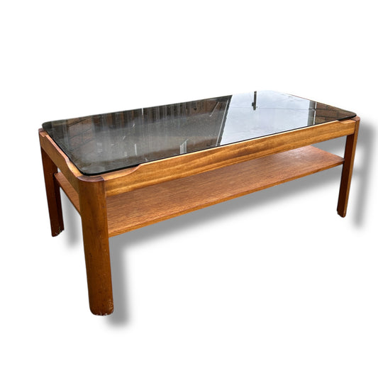 Mid Century Myers Smoked Glass and Teak Coffee Table