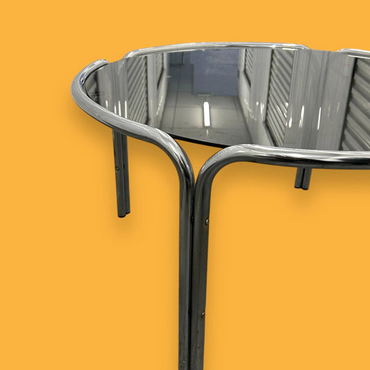Mid Century Smoked Glass and Chrome Round Coffee Table