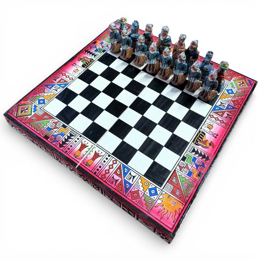 Peruvian Folk Art Chess – Hand Carved Chess Set With Decorative Board & Painted Pieces