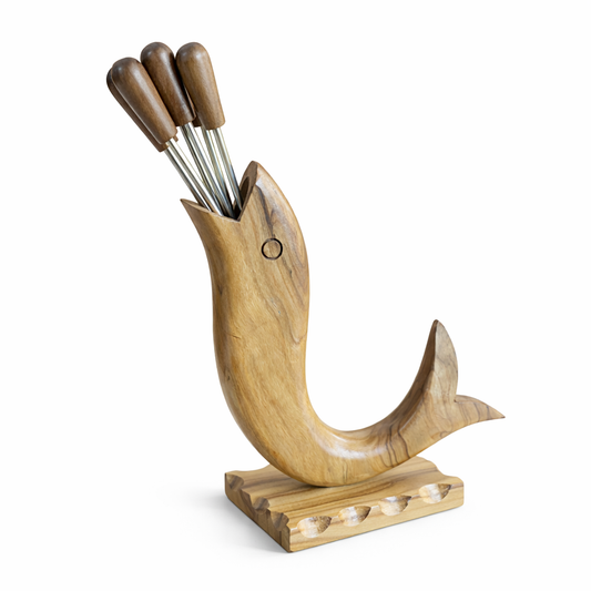 Mid-Century Olive Wood Fish-Form Knife & Pick Holder