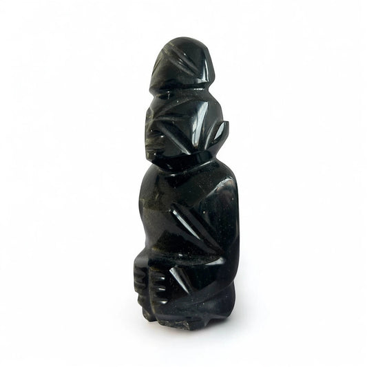 Mid Century Vintage Carved Obsidian Aztec Mayan Sculpture Figure Statue