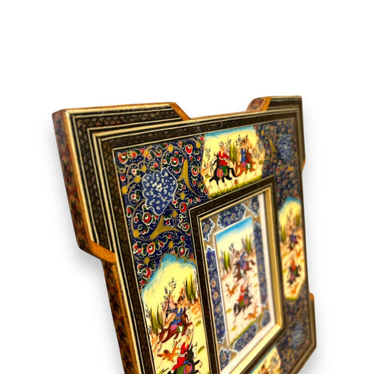 Vintage 1950s Persian Khatam Mosaic Watercolour Painting