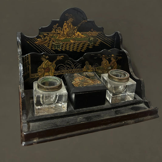 19th Century Japanese Papermache Desk Tidy Inkwell