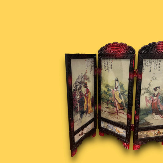 Vintage 1950s Chinese Soapstone Wood Carving Wall Panel