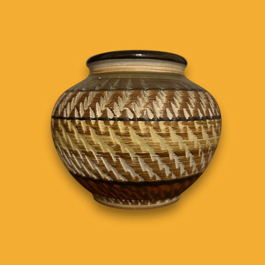 Scheurich West German Mid-Century Incised 'Koralle' Patterned Gold Glazed Ceramic Vase