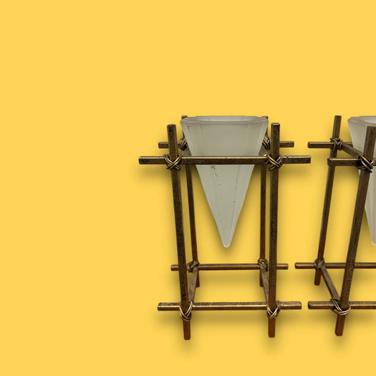 Vintage 1950s Pair of Art Deco Brass and Crystal Candle Holders