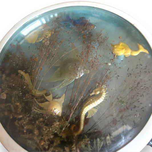 Mid Century Ships Wheel Ocean Fish Scene Terrarium