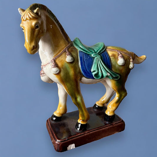 Vintage 1970s Tang Dynasty Style War Horse Ceramic Figurine