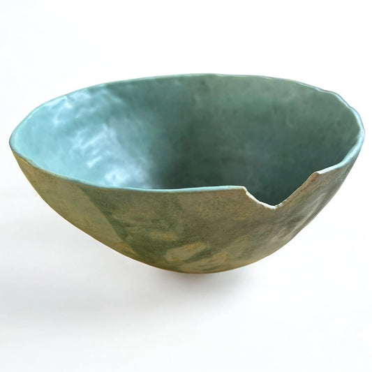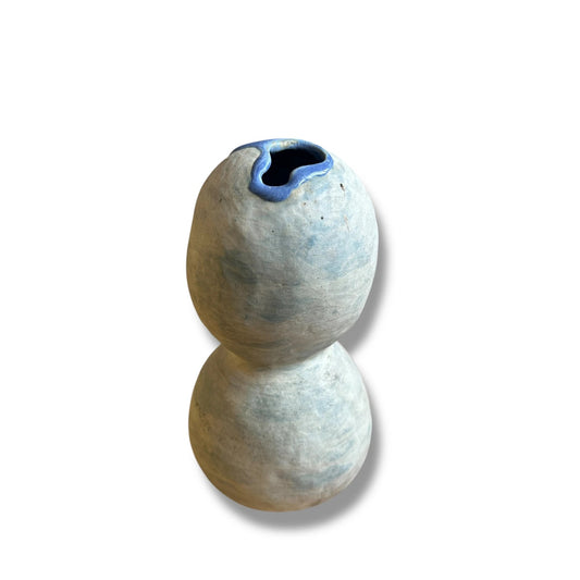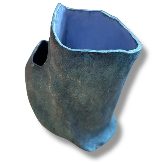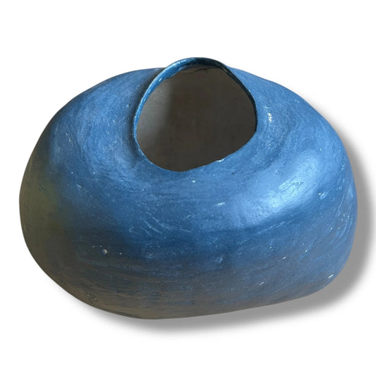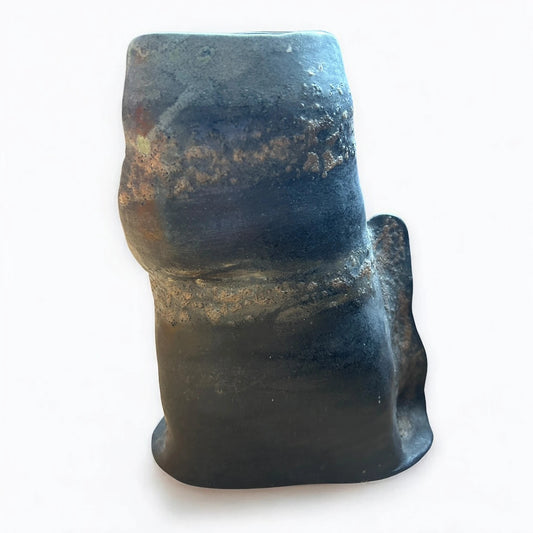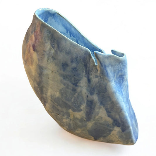 Averil Ainley Studio Pottery | Blue & Ochre Abstract Glaze | Sculptural Decor Piece