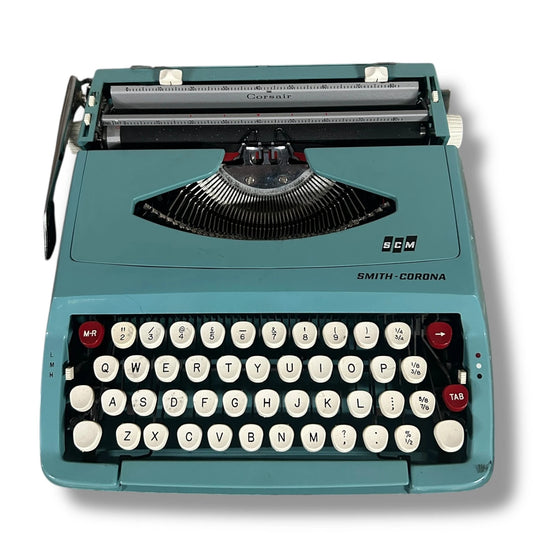 Mid Century Modern Smith Corona Blue Portable Typewriter