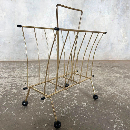 Mid Century Teak Wood Vinyl Storage Smoked Glass Magazine Rack