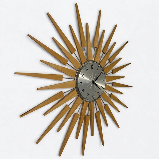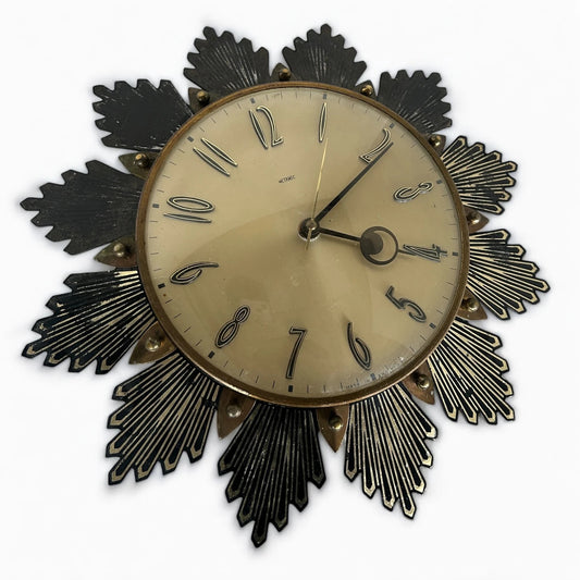 Mid Century Modern Brass Sunburst Metamec Wall Clock