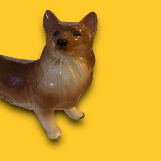Vintage 1980s Ceramic Corgi Dog Sculpture