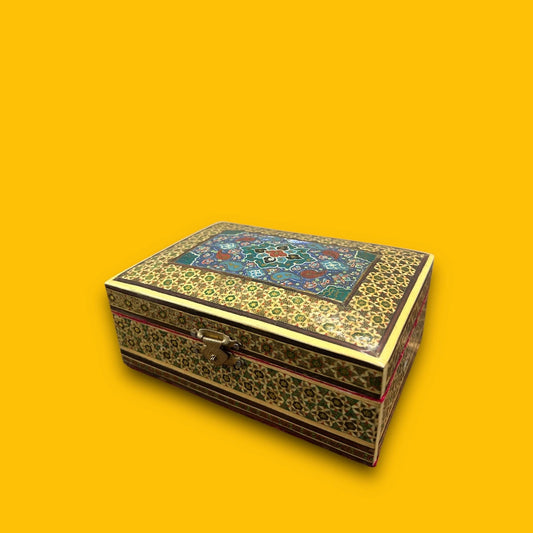 Vintage 1970s Persian Khatam Mosaic Wood Jewellery Box