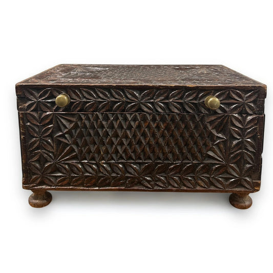 Vintage 1950s Indian Carved Wood Jewellery Box