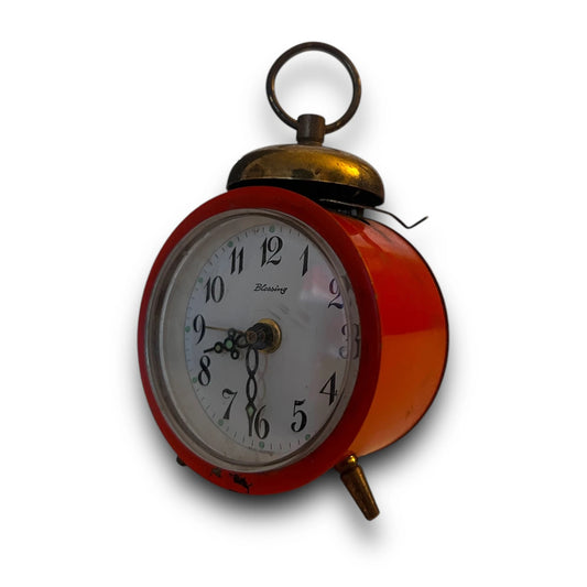 Vintage 1970s Blessing Orange Mini Alarm Clock