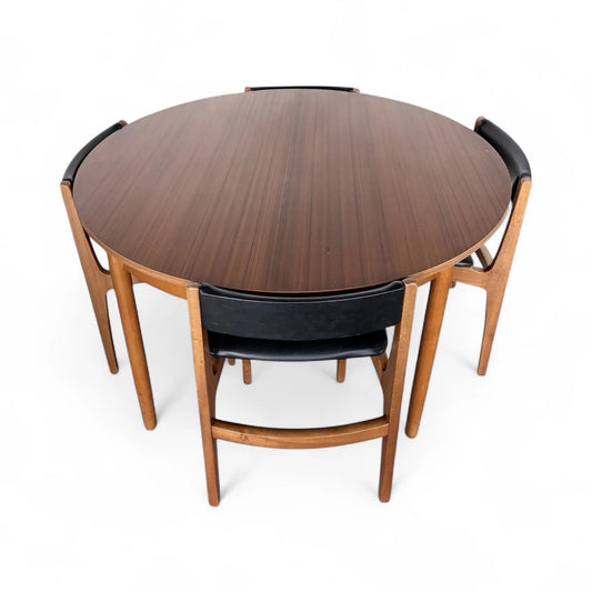 Nathan Round Extending Dining Table with Chairs – Mid-Century Teak Dining Set