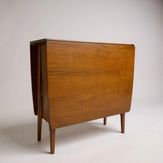 Mid-Century Teak & Beech Drop-Leaf Dining Table – Compact Vintage Table