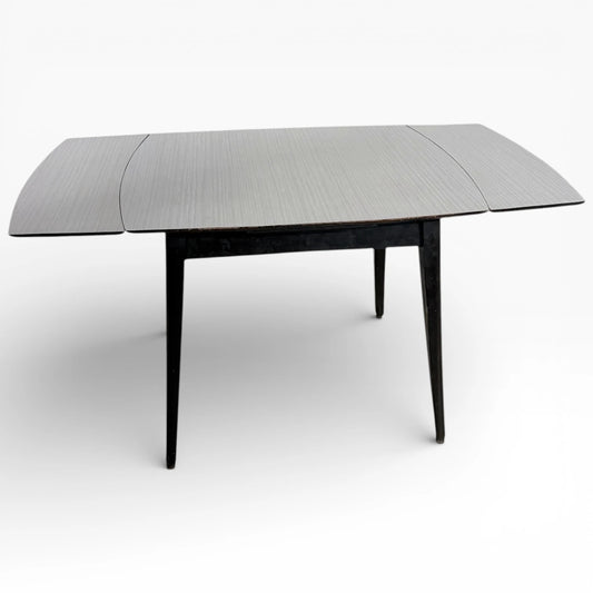 Extendable Dining Table – White Formica Top with Black Legs | Mid-Century Vintage Design