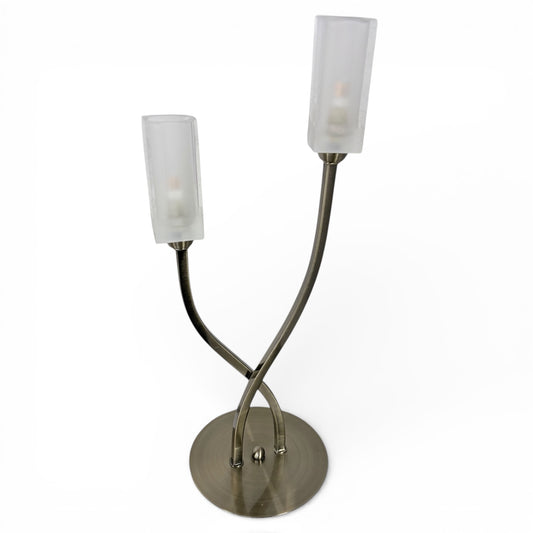 Vintage Table Lamp – Twin Arm Lamp with Frosted Glass Shades | Brass Effect Light
