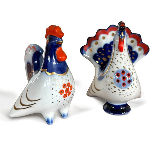Mid Century Russian Soviet Salt & Pepper Shakers BY Lomonosov Porcelain Turkey and Rooster