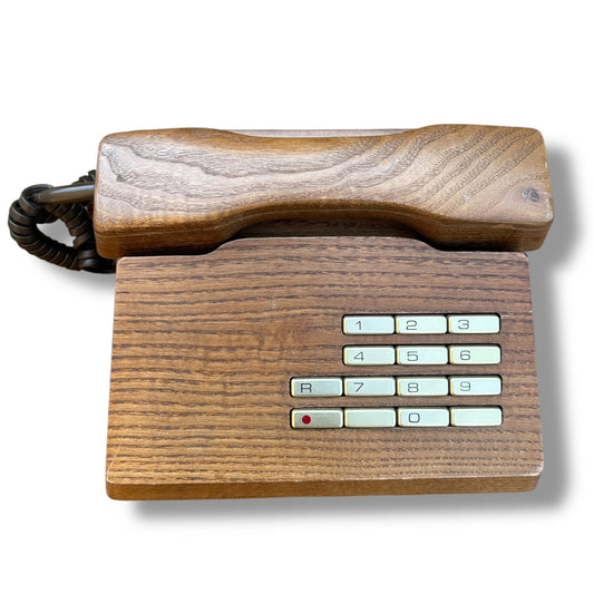 Mid Century Modern Elm Wood Push Button Telephone by Gfeller Trub
