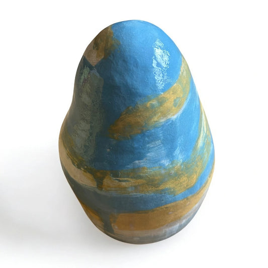 Averil Ainley Studio Pottery | Blue & Ochre Abstract Glaze | Sculptural Decor Piece