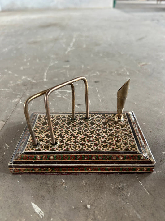 Vintage 1980s Persian Khatam Mosaic Art Marquetry Desk Letter Organiser