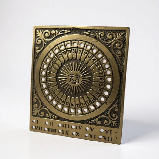 Vintage 1950s Brass Sun Dial Perpetual Desk Calendar