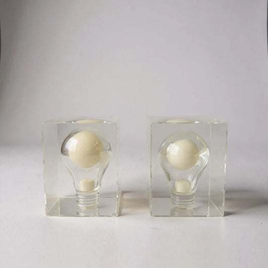 Mid Century Modern Set of two Pierre Giraudon Lucite Lightbulb Art Sculptures