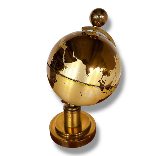 Mid Century Vintage Brass Good German World Globe Cigarette Holder and Dispenser